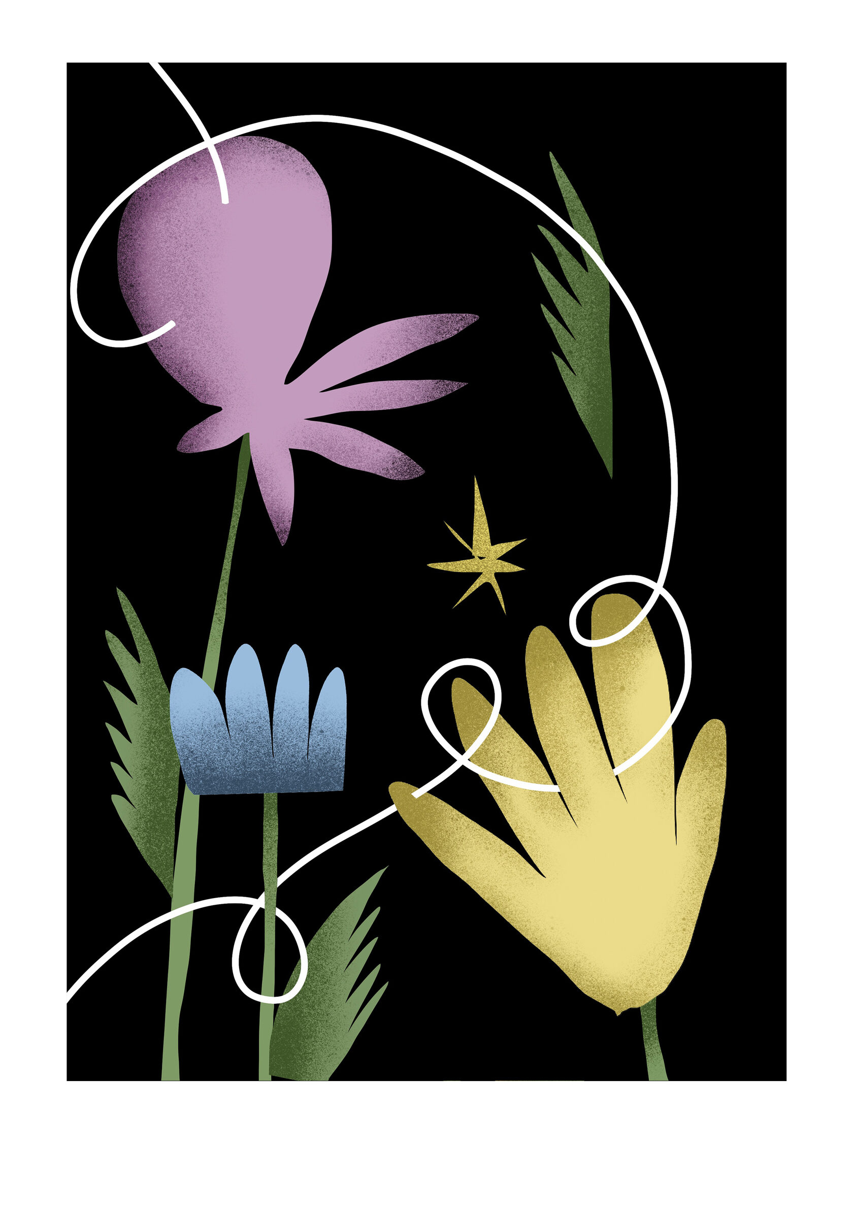 A series of illustrations dedicated to the exploration of the shapes and colors of flora.
